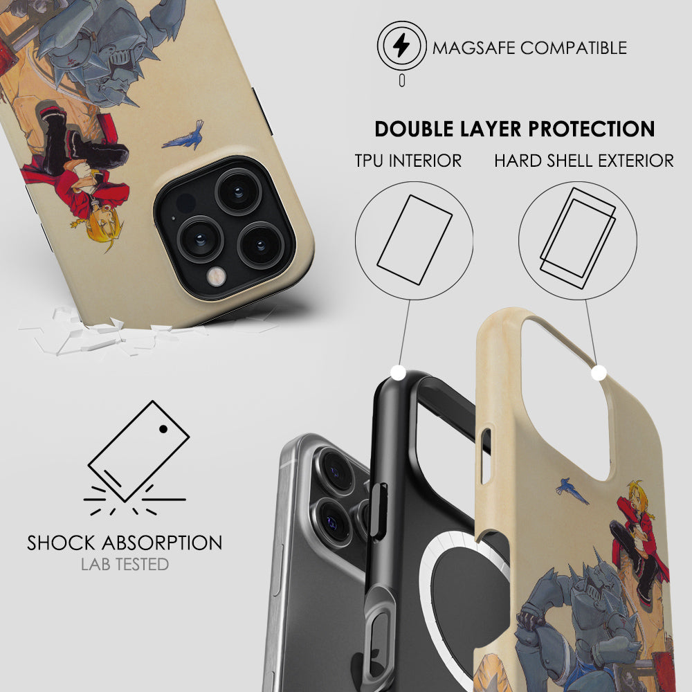 Transform your device into a fan‑worthy statement with the Elric Brothers Artwork-Tough MagSafe by Anime Phone Cover, this cover wraps your phone in the spirit of your favorite story while delivering reliable daily protection.